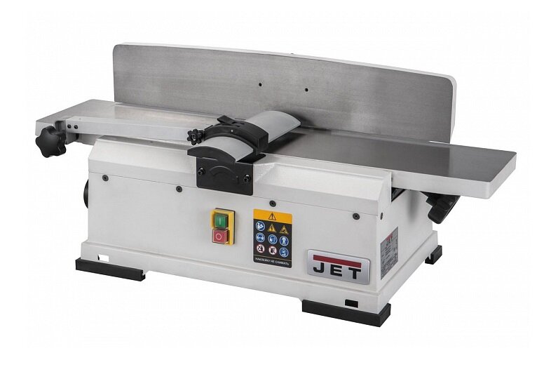 Фуговальные станки, как известно, относятся к разряду самых необходимых и первоочередных инструментов в столярном деле - в случае, если вы хотите работать продуктивно. Фактически все начинается тут - прежде всего пиломатериал обрабатывают на них, задавая две базовые плоскости -две смежные кромки под прямым углом. Понятно, что чем точнее и выверенней это сделано, тем точнее и качественней последующая работа. Правильную геометрию можно же получить только на качественных станках, где столы и упоры правильные. Хорошие фуговальные станки - недешевое удовольствие и не каждый начинающий столяр может себе такой позволить. Небольшие настольные фуговальные станки категории "более-менее" начинаются где-то от 35.000 рублей. Фуговальный станок JET JSJ-6 Такой станок имеет отличный литой чугунный стол, качественную подгонку принимающей и подающей его части, удобно регулируемый параллельный упор и вообще сделан добротно. Его габариты позволяют обрабатывать основной материал - массив древесины в ви