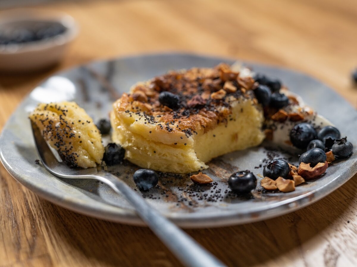 Мы любим делиться с вами новыми необычными рецептами. На этот раз отправимся в страну восходящего солнца! 🇯🇵 Японские панкейки отличаются особой воздушностью и пышностью: всё благодаря взбитым белкам и специальной технологии выпечки, для которой нужны кулинарные кольца. Десерт получается мягким и нежным, словно суфле. Обязательно попробуйте! 🤍 Делимся пошаговым приготовлением! Ингредиенты: Яйца — 4 шт Мука — 4 ст.л. Молоко "Ecomilk" 2,5% — 2 ст.л. для теста и 50 мл для крема Творожный сыр "Ecomilk" — 70 г Сахар — 3 ст.л. Ванильный сахар — 15 г Разрыхлитель — 1 пакетик Ванилин — по вкусу Соль — по вкусу Ягоды и орехи — для украшения Мак — щепотка Кулинарные кольца Приготовление: ШАГ 1/5 Первый этап — тесто. Для начала необходимо отделить белки от желтков. Используйте любой удобный для вас способ. Тарелку с белками убираем в сторону. Желтки взбиваем с сахаром до пышности. Обычно на это требуется около 5 минут. Не забывайте: для того, чтобы все получилось на высшем уровне, яйца должны