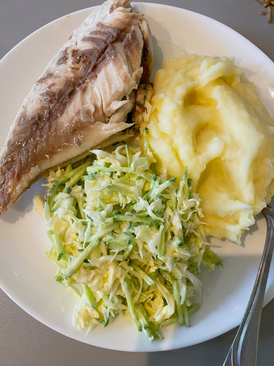 Для маринада нам понадобиться на две рыбы : петрушка небольшой пучок чеснок - 3 зубчика оливкое масло - 1 ст. Ложка соевый соус - 2 ст.ложки соль - 0,5 ст.ложки перец молотый Очистить рыбу. Вынуть все внутренности. все ингредиенты смешать и смазать рыбу. Мариновать 30 минут. выпекать в духовке при 180 градусах - 20 минут. Для подачи с рыбы сняла кожу. Подавала с картофельным пюре и салатом витаминным. Рыбка очень вкусная. Советую. Приятного аппетита💙