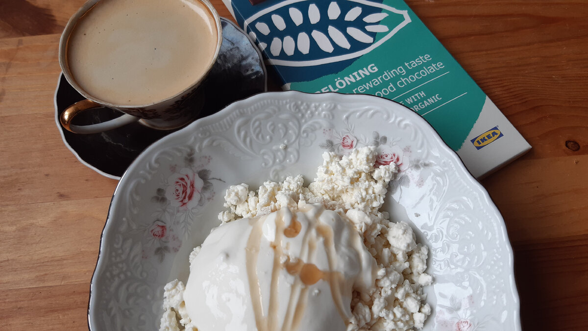 Всем добрый день, дорогие читатели! На завтрак у нас сегодня творог со сметаной и сиропом агавы. Также кофе эспрессо и шоколад. Муж в будни всегда пьет чай. Дети могут и кофе попить с молоком, и молоко, и ряженку - что захочется. На обед я с собой брала обед из морозилки - плов из перловки с индейкой, и огурец. Так это удобно: открыл дверцу морозилки, выбрал из ассортимента блюдо себе на обед. Как раз к обеду еда моя разморозилась и я прекрасно поела. На ужин пекла хачапури - был сыр сулугуни, слоеное тесто - вот и прекрасный ужин. К нему еще овощной салат. Я один съела вечером с салатом, а второй взяла потом на работу. Также еще испекла масляно-сахарный дрожжевой пирог - жутко вредный, но такой вкусный! Но ели его уже на следующий день. Тесто месила в кухонной машине, пекла в духовке. Заехала после работы в Дикси за сливками и хлебом, заодно прихватила немного из скидочного отдела: 2 упаковки филе бедра индейки (600 г по 150 р), 3 упаковки почти по 1 кг куриного филе (по 125 р/кг!!