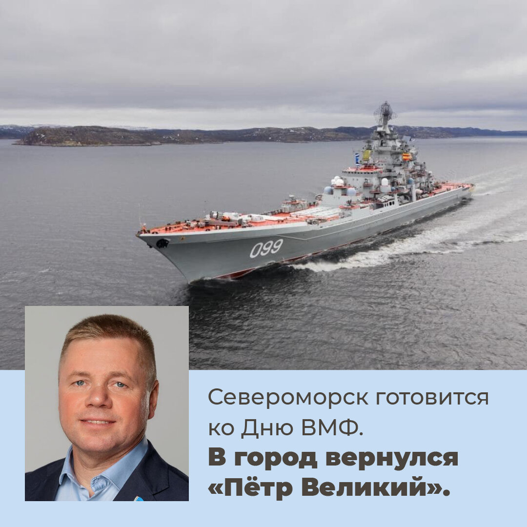 Именно с борта «Петра Великого» командующий Северным флотом адмирал Александр Александрович Моисеев будет поздравлять личный состав Северного флота и ветеранов ВМФ.