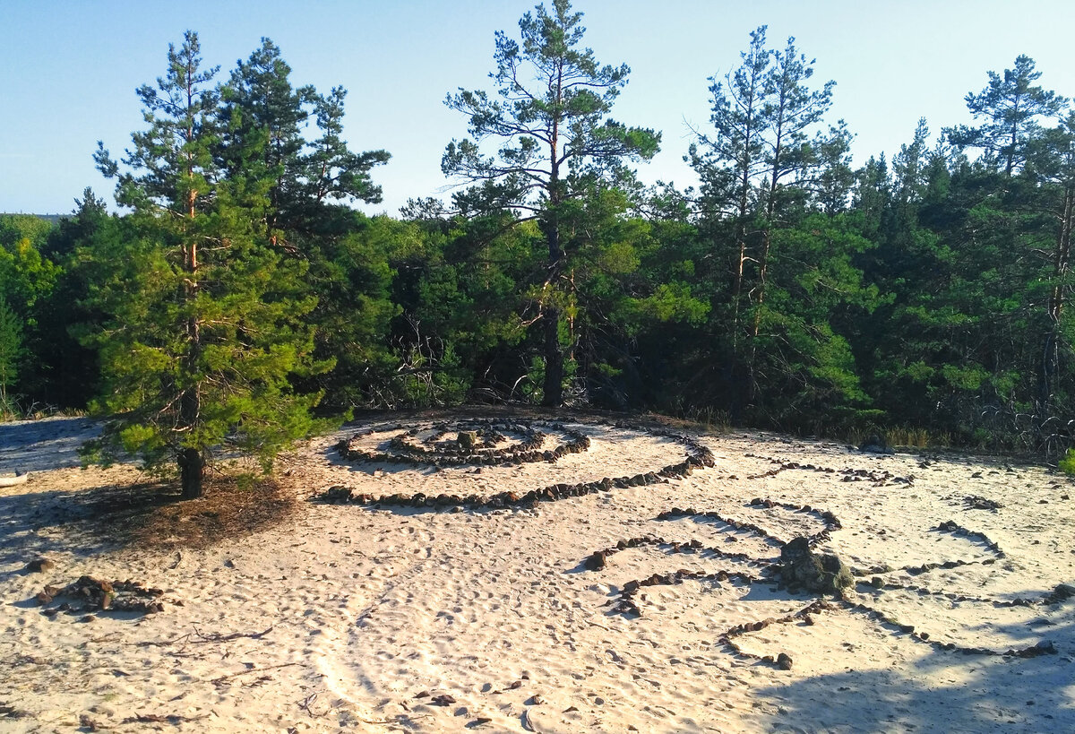 Итак, вдоволь налазавшись по гроту «Каменная Изба», достигаем следующего объекта, затерянного на границе Самарской и Ульяновской областей. Как видите, он антропогенного происхождения: это языческое капище «Марсово Поле». Почему «Марсово» и почему «поле» — сей вопрос так и остался нераскрытым. Находится это творение рук человеческих на достаточно высоком и крутом холме, который покрыт лесом снизу и буреломом ближе к вершине, а лысый — только лишь на самой вершине, плоской и песчаной. Какой-либо задокументированной версии относительно происхождения этого объекта найти не удалось, но наиболее подкрепленная доказательствами из всех существующих — способна «порвать шаблон» даже опытному исследователю... Сказывают, что в 90-е годы некий корреспондент местной газеты насочинял кучу откровенно «желтушного» материала про аномальные объекты области, места силы и прочий подобный полтергейст. Кушать мужичку хотелось, а с фантазией дела обстояли весьма и весьма недурно — говорят, что истории сии пря