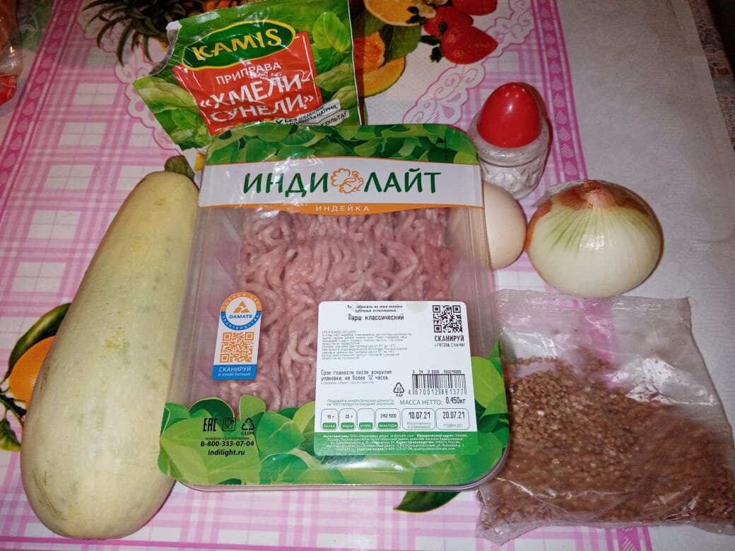 Ингредиенты: Подготовьте все ингредиенты, гречку удобнее использовать в пакетике Гречку закинуть в кипящую воду и варить до полуготовности В это время нарежьте крупно кабачок и лук Измельчите в блендере В чашу для смешивания выложить фарш, пюре из кабачка и лука, гречку, яйцо, слегка посолить и добавить специи, я использовала хмели-сунели Все хорошо перемешать Сформировать котлеты, выложить их на противень смазанный растительным маслом и отправить в духовку на 25 минут при температуре 180-200 градусов И диетические котлеты из фарша индейки с кабачком и гречкой готовы, приятного аппетита! Если вам понравилось, то ставьте пальцы вверх и подписывайтесь на мой канал, все самое интересное и вкусное впереди!
