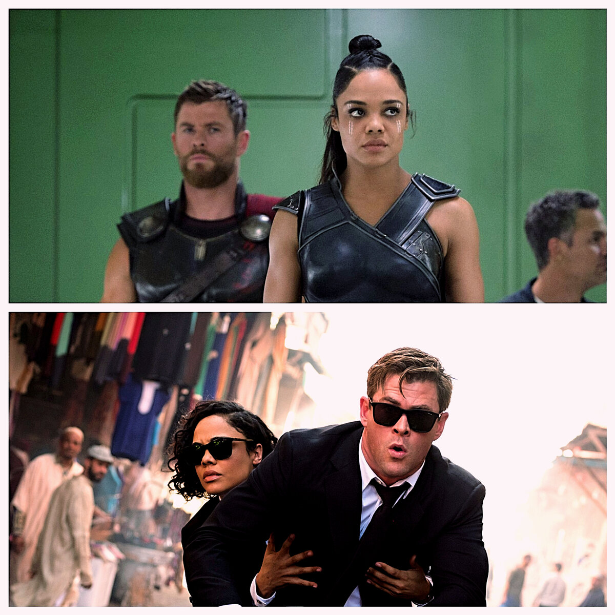 1. Крис Хемсворт и Тесса Томпсон. Крис Хемсворт и Тесса Томпсон постепенно становятся любимым известным актерским дуэтом среди поклонников по всему миру, снимаясь вместе в таких фильмах, как «Тор: Рагнарек» (2017), «Люди в чёрном: Интернэшнл» (2019) и «Мстители: Финал» (2019), а в настоящее время работают над фильмом «Тор: Любовь и Гром». Их отношения на экране и за кадром искренние и заразительны, надеемся, что в будущем это будет больше раскрыто в фильмах. Продвигая фильм «Люди в чёрном: Интернэшнл» в 2019, Томпсон встретилась с Refinery29 и рассказала, каково это было работать с Хемсвортом над различными проектами. Она назвала его невероятно одаренным актером и была ему благодарна за то, что он дал ей возможность сниматься в боевиках и фильмах с компьютерной графикой. «Мне нравится эта культовая голливудская штука, когда двух актёров в течение их карьеры объединяются в пары, и они могут делать всё вместе» - сказала Томпсон. «Я думаю, что это именно то, что происходит со мной и Крисо