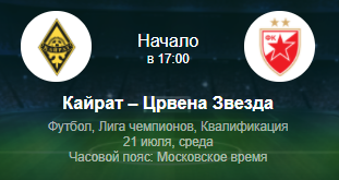 Что касается сегодняшней формы двух команд, то сербы выглядят куда предпочтительнее - более 30 матчей подряд без поражений, в то время как представители Казахстана не часто, но все же ошибаются, причем против команд значительно уступающих им по уровню. В феврале этого года «Кайрат» позволил проиграть себе в пяти матчах кряду, но мы все же говорим про сегодняшний день. «Црвена» попала в этот раунд квалификаций напрямую, а вот «желто-черные» сыграли уже два матча против израильского «Маккаби Хайфа». И стоит отметить, это были невероятно тяжелые два матча для казахов, что, безусловно, может сказаться на качестве их игры се
