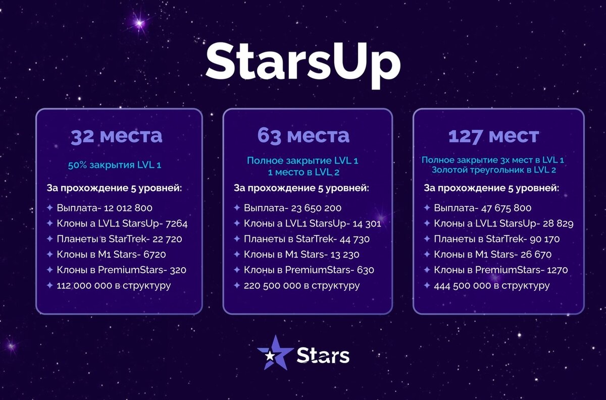 На сайте платформы STARS уже доступна активация партнёров в новой программе StarsUp. При этом для большинства остается актуальным вопрос выбора правильной стратегии входа. По этой причине администрация STARS совместно с топ-лидерами разработала систему тарифов с самыми эффективными стратегиями для работы в StarsUp.