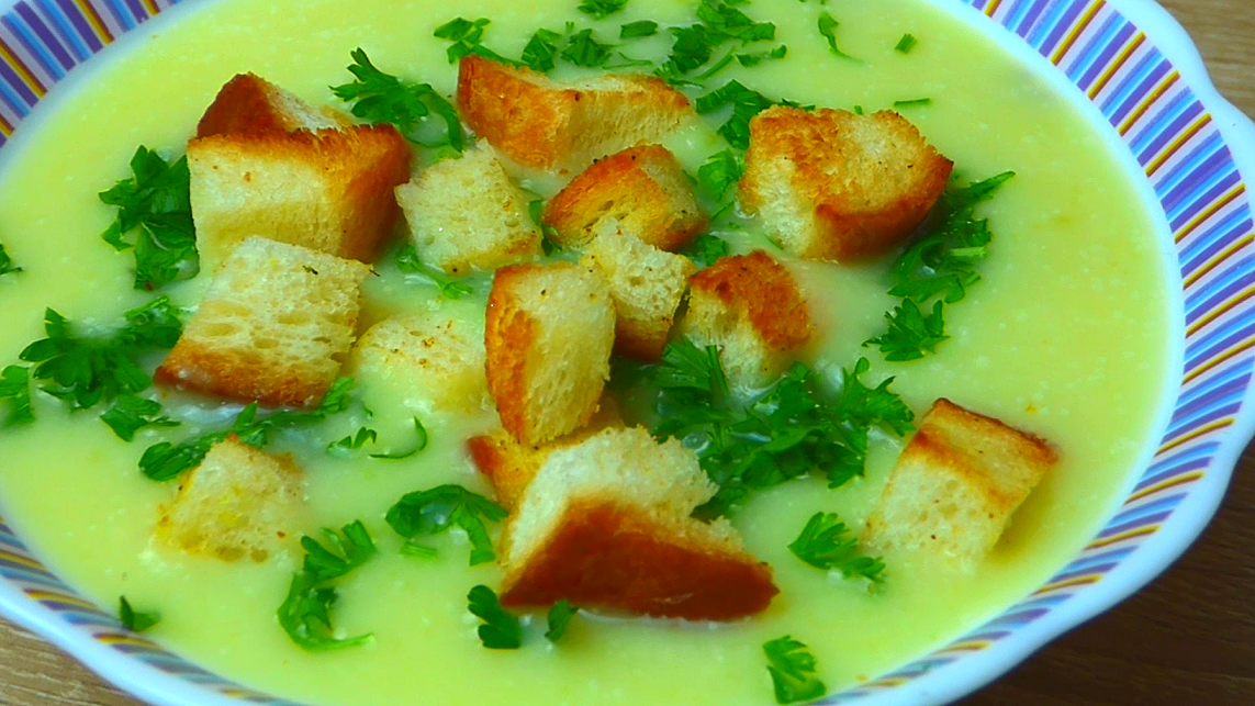 Хочу поделится рецептом вкусного и полезного супчика, который просто обожают мои дети😊 Готовится он очень просто и быстро! На вкус напоминает грибной. Ингредиенты: Кабачки 2-3 шт Картофель 3-4 шт Лук - 1 шт Вода или бульон - 1 литр Сливки - 150 мл Растительное масло - 3 ст.л. Соль, специи по вкусу Зелень - пучок Хлеб для сухарей - 3 ломтика. 1. Нарежьте крупным кубиком лук, картофель, кабачки. Если кабачки молодые, можно их не чистить. 2. На среднем огне обжарьте лук до прозрачности. 3. К луку добавьте картофель и перемешайте. Через несколько минут на сковороду выложите кабачки, накройте овощи крышкой и потушите минут 15. 4. Когда овощи станут мягкими, переложите их в кастрюлю, добавьте соль и специи и перебейте их блендером до однородного состояния. 5. Влейте бульон или воду к овощам и хорошо перемешайте. Затем доведите суп до кипения, добавьте сливки, перемешайте и накройте крышкой. 6. Теперь займемся сухариками. Нарежьте хлеб кубиком. Высыпьте на разогретую сковороду,