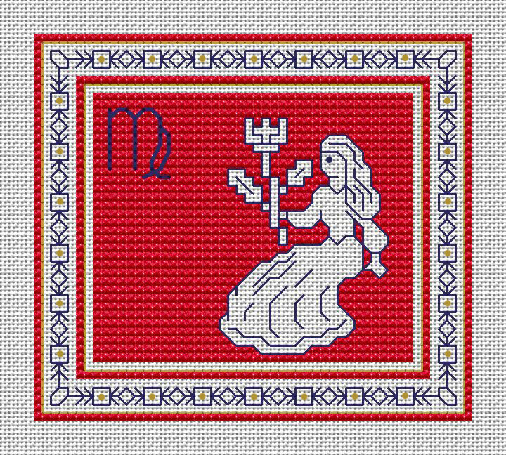 Здравствуйте всем! Впереди сентябрь, астрологический месяц Девы и может быть кому-то захочется вышить этот знак зодиака. Несколько слов о Деве. Это - знак земной стихии, олицетворяющий справедливость и чистоту, воплощает принцип порядка, победу разума над чувствами, умение видеть целое в деталях. Дева больше других знаков зодиака стремится к совершенству во всем, учится всю жизнь, но также учит и других. Стремление к лучшему заставляет Деву подмечать изъяны во всем, что ее окружает, что требует исправления. Дева часто имеет красивую внешность, наделена музыкальным слухом и вокальными данными, обладает хорошим вкусом к вещам, избирательна в общении. Осторожна во всем, поэтому стараются следить за здоровьем, любят лечиться и лечить, часто мнительны, когда дело касается их самочувствия. Реалистично смотрят на жизнь, экономны, стремятся подстраховать себя накоплениями. От окружающих Дева будет требовать соблюдение чистоты в одежде и в речи. Но не будем забывать у меня канал о вышивке! В св