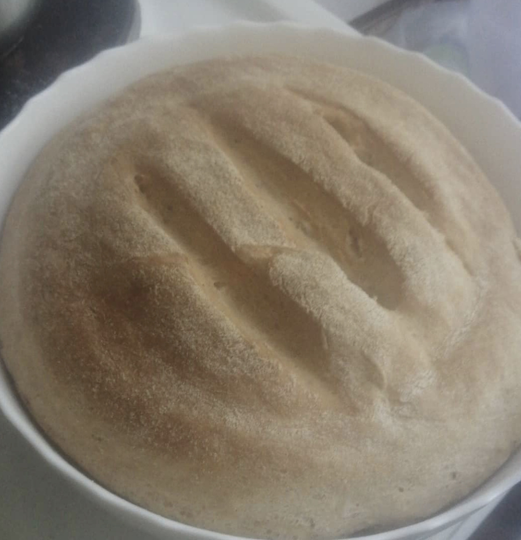 Необходимые продукты: 450-500 г муки; 8 г дрожжей; 300 мл воды; 3 ст.л. масла растительного; 1 ст.л. сахара; соль (по вкусу). 1. В небольшую миску просейте 1/3 часть муки цельнозерновой. Добавьте дрожжи и просейте еще раз вместе с мукой. 2. Влейте воду комнатной температуры, добавьте сахар и перемешайте. Накройте салфеткой, оставьте в теплом месте на 15-20 минут. 3. Опару аккуратно перемешайте. Всыпьте щепотку соли, затем влейте 1-2 ст.л. растительного масла. Снова все перемешайте ложкой или лопаткой. 4. Частями введите оставшуюся муку. Замесите тесто лопаткой, потом руками на столе. Налейте на тесто 1 ст.л. масла оливкового и тщательно вымесите. 5. Выложите в глубокую миску, накройте салфеткой и оставьте для подхода на 25-30 минут. После этого снова хорошенько обомните. 6. Скатайте из теста шар. Выложите в форму для запекания, смазанную маслом. Накройте салфеткой и оставьте еще на 15 минут.