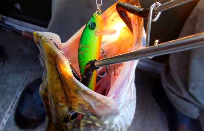 Раздел: Снасти для ловли рыбы Багорики бывают разборные и цельные (сейчас в магазинах каких только нет), разборные намного удобней - я пользуюсь таким. Крупная рыба — особенно хищная, заглатывает крючок с наживкой очень глубоко и вытащить его без специальных приспособлений для рыбной ловли, не очень то и легко. Если вытаскивать крючок руками, то можно сильно поранить пальцы, потому что почти у всех хищников (особенно у щуки) зубы острые, как бритва. Специально для таких целей есть приспособления для рыбной ловли, которые называются зевник (пружина, которая держит пасть рыбы открытой) и экстрактор (длина его до 20 см, похож на вилку с двумя зубцами - для удаления крючка), всё это можно найти в рыболовных магазинах. Зевник в пасть рыбы нужно вставлять так: одной рукой надавить слегка на жабры, что бы её рот чуть приоткрылся, а другой рукой сдавить кончики зевника и всунуть в приоткрывшийся рот рыбе и после этого отпустить зевник (силы пружины зевника хватит, что бы удерживать рот открыты