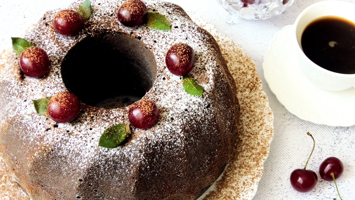 Всем привет! Сегодня от души делюсь с вами рецептом изысканного шоколадного кекса. Его вкус просто покорил меня! Он настолько нежный, воздушнейший и вкусный, что устоять перед ним невозможно. Творожный сливочный сыр привносит свою изюминку и делает кекс необычным, он получается как будто бы с кремом внутри. А вишня здесь просто идеально дополняет шоколадное тесто. Такой шоколадный кекс очень просто и быстро готовится, а получается пышным, большим и лёгким! Обязательно его приготовьте и порадуйте своих родных! Видеорецепт: Ингредиенты: -3 яйца -250 гр пшеничной муки в/с -170 мл тёплого молока -170 мл растительного масла без запаха -180 гр сахара -40 гр какао -10 гр ванильного сахара -10 гр разрыхлителя -1 стол.л сахарной пудры -1 ч.л крахмала -170 гр вишни без косточек -200 гр творожного сливочного сыра Приготовление Отдельно просеять муку, разрыхлитель и какао. В другой миске взбить миксером яйца с сахаром и ванильным сахаром. Влить молоко