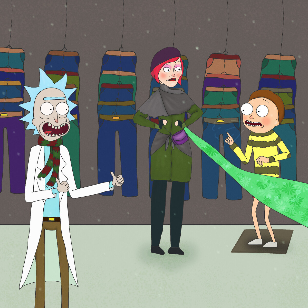 "Рик и Морти" - это анимационный сериал, который появился в далеком 2013 году. На данный момент уже вышло 5 сезонов. Главные герои - ученый Рик Санчез и его внук Морти, которые часто путешествуют вместе и попадают в различные невероятные истории. И тут я попробовала представить, а что если бы Рик и Морти посетили Россию, и какие впечатления у них бы остались? Так у меня возникло несколько забавных ситуаций, которые я нарисовала. Рынок не для неженок Вы помните, как зимой, стоя на картонке, мерили ледяные вещи на рынке? Эти ощущения просто незабываемы и остаются на всю жизнь. Поэтому, зная характер Рика, и то как он любит подшучивать над Морти, тот не упустил бы возможности устроить шоппинг своего внуку. Праздничный стол Многие иностранцы не понимают наших блюд и то, как мы их употребляем в пищу. Например, их смущает холодец или салат "селедка под шубой". Иностранцы не понимаю: как можно сочетать соленую рыбу и сладкую свеклу, или вареное мясо с холодным желе. Но Рик и Морти посетили