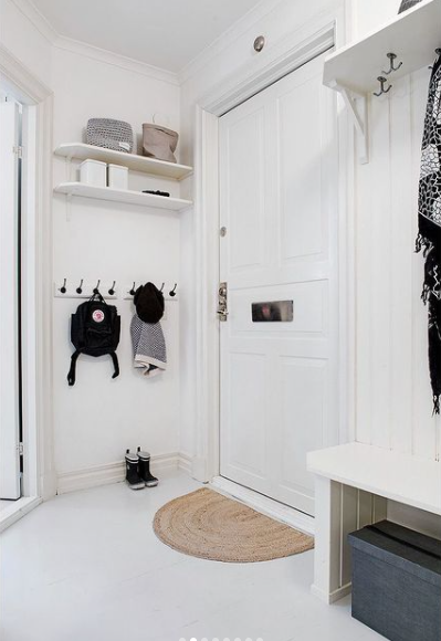 1️. Цвет. В первую очередь обратите внимание на цвет стен, пола и потолка. Светлые оттенки не воруют пространство, как это делают темные тона. Также не стоит выбирать обои в мелкий рисунок и полосочку. Визуально создают захламленность. Постарайтесь, чтобы цвет входной двери не отличался от цвет стен. Если не планируете менять саму дверь, то можете заказать специальную накладку в нужной вам расцветке.