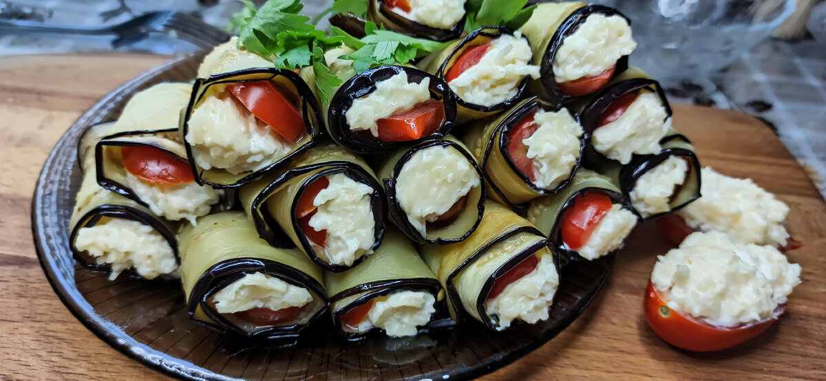 Отличная закуска из баклажанов.Как приготовить рулетики с чесноком и сыром.