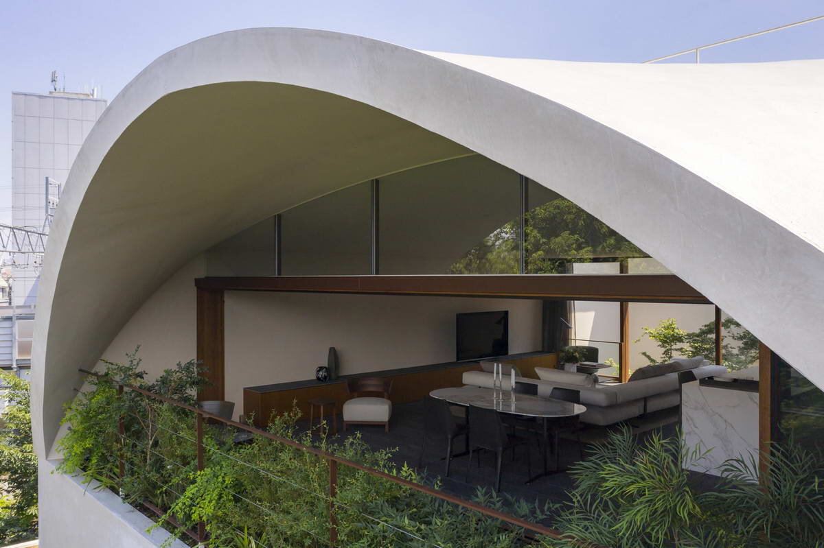 Объект находится рядом с железнодорожной станцией в районе Мэгуро в Токио. К востоку от участка расположена эстакада, а к западу — соседнее здание. К северу, напротив главной дороги, есть лес, который вы просто видите вокруг станции. За лесом можно увидеть город Сибуя и дальше до Синдзюку. В доме на две семьи есть поликлиника на первом этаже и два этажа выше для каждой семьи. Авторы решили спланировать три сада разных персонажей. При входе в ворота клиники на первом этаже посетителя встречает сад с лиственными деревьями и брусчаткой. Когда вы смотрите вверх, всё, что вы видите, — это чистое небо, поскольку лиственные деревья искусно скрывают соседние элементы. Вы будете чувствовать себя так, как будто находитесь в одноэтажном здании. Этот сад создает расслабляющую атмосферу для посетителя. Второй этаж — жилое помещение для бабушки. Чтобы заглушить шум поездов и виды из соседних построек, жилое пространство планировалось обращать на юг в сад во дворе, окружённый стенами высотой 6 метр