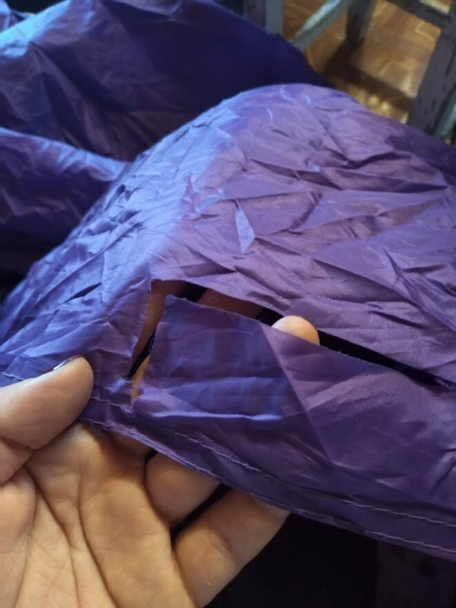 Порвалась палатка, и вроде не сильно и на функциональность палатки дырка не влияет, но не красиво же Даже не знаю как так можно было умудрится, но факт остается фактом, а дырка остается дыркой. И я решила не просто заштопать, а сделать красивые заплатки Положила маленькие лоскутки тканей и притачала их зигзагом на основу. На вторую дырочку сделала заплатку в виде деревьев а с другой стороны дырки деревца и палатка) Палатка стала еще уютнее и милее, что говорит о том что не стоит унывать, решение найдется на многие неприятности.