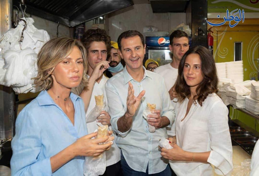 Президент Сирии Башар аль-Асад, его жена Асмаа (ее фамилия не Асад, как часто пишут, а Ахрас - арабские женщины фамилий мужа не берут) и их трое детей на днях, что называется, вышли в народ. В полном составе сходили в один из "народных" районов стольного града Дамаска и поели шавермы в одной из тамошних забегаловок. В этом районе когда-то был очень известный центр ночного общепита. В любое время суток можно было приехать и наесться до отвала за вменяемые деньги: конкуренция была такая, что завышать цены никому не приходило в голову. Хорошо зарабатывали все с огромного оборота. Появление семьи президента в таком людном и популярном месте, как и обычно в таки случаях, наделало фурор. Асады вообще люди довольно простые, всегда с людьми общались и общаются с радостью и удовольствием. Асмаа, которая сама не так давно переболела раком, а еще на пару с мужем переболела ковидом, активно курирует проект помощи раненым и инвалидам войны, посещает семьи пострадавших в результате боевых действий