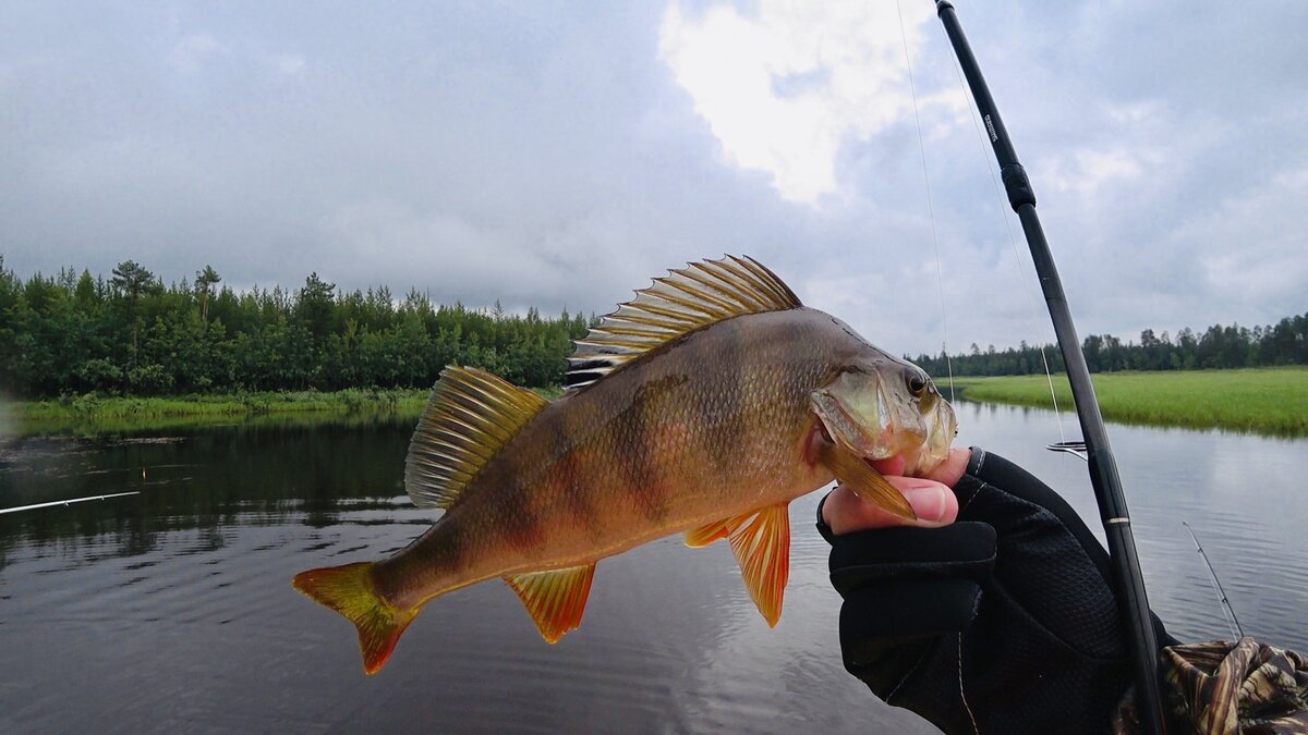 Всем привет! Одной дождливой, летней ночью с другом, Георгием выехали на рыбалку за 200 км. от города. Прогноз конечно не радовал тёплой погодой, но уж очень сильно хотелось на рыбалку. На дорогу и ловлю живца, на живца любит рыбачить Жора, у нас ушло около 4 часов, с учетом ремонта дороги. Около 6 утра приехали в желанное место, накачали лодку, собрали рыбацкий инвентарь, еду и отправились вверх по течению реки Тромъеган, первая остановка была старица неподалёку от остановки, около 1 километра. Место красивое, вода спокойная, большое количество травы в воде, переодически слышно, как что то выпрыгивает за мальком. Первые минут двадцать не принесли ни какого результата и честно говоря настроение было так себе, дальняя дорога, дождь, наше ожидание пока ни как не оправдались. Меняя снасти и места подобралось к середине старицы, в этом месте было много травы, вдоль которой я и начал прокидывать 130 воблер, на одной из проводки чувствую слабый удар, «Трава», подумал я, но натяжение в леск