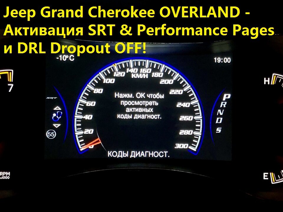 Привет! Меня очень сильно раздражало, что при включении поворотника, отключался дневной ходовой, в соответственной фаре, на время работы поворота (DRL Dropout — называется). Вычитал, что лечится это посещением дилера и, конечно, за определенную сумму денег. Помимо этого дилер активирует SRT Menu & Performance Pages в приборной панели и головном устройстве. По сути, дилер просто меняет некоторые пункты в комплектации/настройках автомобиля, ничего сверхъестественного.