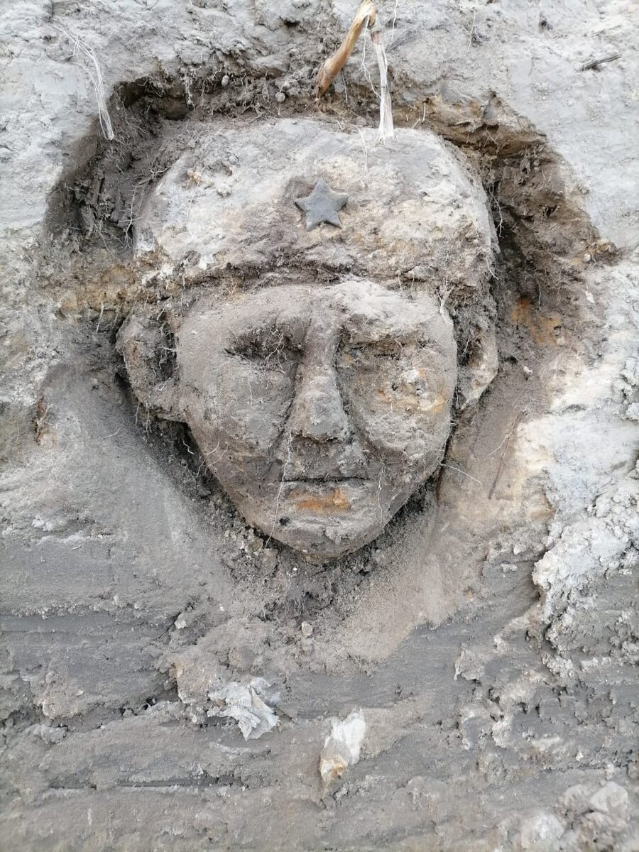 Вчера у Рва появилось лицо! Девочка из Татарстана сотворила его в земле Рва. Когда происходят такие вещи, всегда задумываешься. Почему одни могут видеть, чувствовать, сопереживать, а другим только потерянные бабки болят. Вот оно лицо Рва, наверное, оттуда, из черной земли смотрят на нас одни и с неба другие. Хотя нет, они все смотрят с неба, а это лицо Рва. Он очень долго хранил их тела, он воевал вместе с ними и Ров, он тоже солдат.