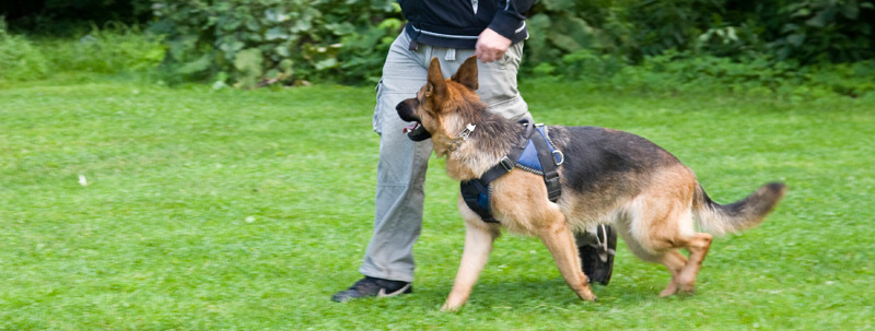 Навык движения собаки возле дрессировщика с левой стороны необходим во всех случаях движения с особакой. Условные раздражители - рывок поводком, поглаживание, лакомство. Приёмы приучения собаки к движению рядом с дрессировщиком обрабатываются в следующем порядке. Дрессировщик принимает основную стойку с собакой. Для этого он берет собаку на короткий поводок и ставит её с левой стороны от себя, так чтобы колено его левой ноги касалось правой лопатки собаки. Такое положение собаки около дрессировщика наиболее удобно для управления собакой и движения с ней. Левой рукой дрессировщик берет поводок в 20-30 см от ошейника так, чтобы он спокойно двигался в слегка сжатой кисти руки. На правую руку выше кисти надевает петлю поводка и основную часть поводка за середину удерживает правой рукой так, чтобы не мешать движениям рук, при ходьбе. Добившись правильного положения собаки у ноги, дрессировщик поощряет её поглаживанием, восклицанием "Хорошо", лакомство. Затем он называет кличку собаки,