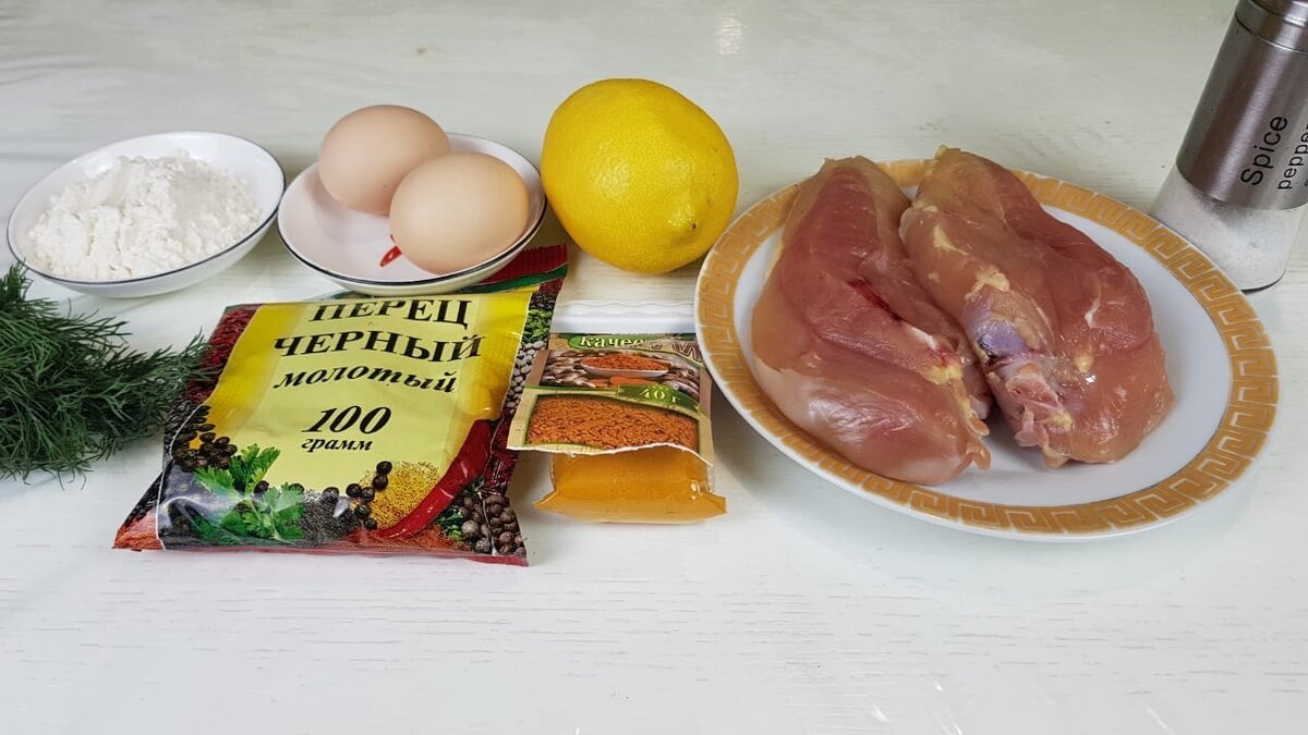 Здравствуйте, любители вкусных рецептов! Готовлю куриное филе в кляре. Ингредиенты: 400 гр. куриной грудки, 0,5 ч. ложки соли, 1 ч. ложка куркумы, укроп, 0,5 ч. ложки молотого перца, 1 ч. ложка сока лимона, 2 ст. ложки муки, 2 яйца. Получилось ароматное, сочное внутри и с хрустящей корочкой куриное мясо с восточными оттенками за счет куркумы. Подала к столу с макаронами из твердых сортов пшеницы. Курица хорошо сочетается с любым гарниром. Кушать подано. Приятного аппетита!