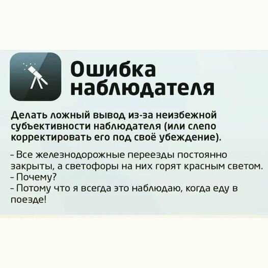 Вы когда-нибудь слышали про такой термин, как «ошибка наблюдателя» Что это такое? Говоря простым языком, любой человек может сделать неправильный вывод или принять неправильное решение на основании своих ограниченных наблюдений или убеждений. К примеру, маленькая мошка, живущая всего лишь несколько дней, может сделать неправильный вывод о том, что вся жизнь состоит из плохой погоды, просто потому что все эти дни накрапывал дождь. И, наоборот, другая мошка может сделать неправильный вывод о том, что вся жизнь состоит из ярких солнечных дней. Это и есть пример субъективного или ограниченного мышления. Мы тоже можем принимать неверные решения, не учитывая, что жизнь — это сложная штука. Изменяющиеся обстоятельства, как и погодные условия за нашим окном, могут вносить свои коррективы. Например, до 2020-го года мало кто мог себе представить, что условия жизни во многих странах изменятся в глобальном масштабе. У кого-то сорвались планы с отпусками и с туристическими поездками в другие страны
