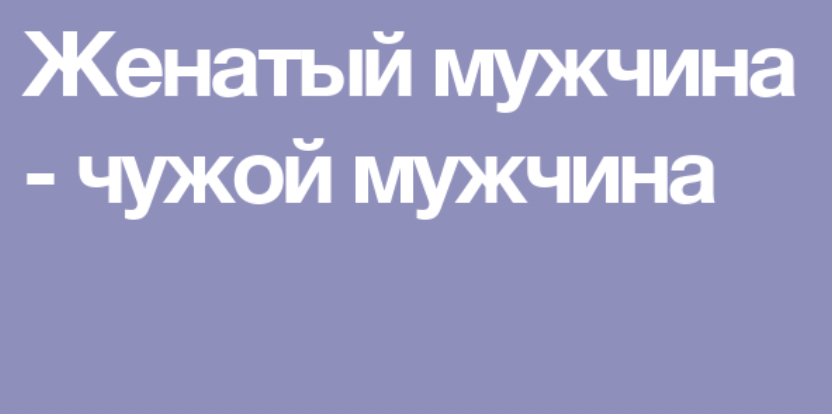 У всех есть свои принципы и для меня это женатый мужчина. Ведь это дорога в никуда, в любом случае эта схема обречена на провал при любом варианте событий. Я считаю, что это просто зыбучие пески, оно вас затянет и вы потеряете самое дорогое- время. Но даже при "хорошем" раскладе, если он бросит семью, жену и детей, как можно быть уверенными, что вы не окажетесь на том же месте, ведь бумеранг никто не отменял, тем более, что если человек поступил так однажды, то и второй раз не будет проблемой. Но это если вы знаете, что у него есть жена и она "не стенка", подвинется , это еще не самый худший вариант. Но намного хуже, когда вы оказываетесь "разлучницей" даже без своего ведома. Ведь иногда людям нужны новые ощущения и из-за таких ощущений вы можете оказаться заложницей ситуацией. Всегда смотрите на первые звоночки, которые за розовыми очками все равно можно рассмотреть. Девочки, будьте осторожны в своих желаниях и своих общениях. Вы не такие сильные и всемогущие, как вы думаете С