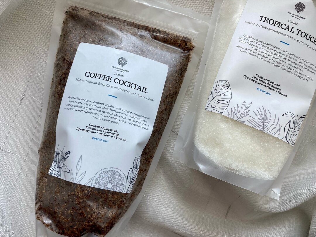 Это два скраба Epsom - кокосовый скраб и скраб с натуральным кофе.