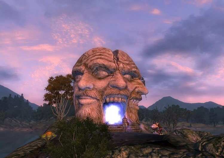 Четвёртая сторона памятника, повёрнутая к храму, окаймлялась дорожкой из стекла того же цвета, что и камень памятника. Здесь четвёртое лицо озаряла улыбка, печальная, полная утешения и странного торжества. С ласковой осторожностью он склонялся над толпой стремившихся к нему мужчин женщин с сильными и красивыми телами. Они тянулись к гиганту, а он как бы приглаживал ладонью ниву поднятых к нему рук и опрокидывал широкую чашу на обращённые к нему с надеждой и радостью лица».