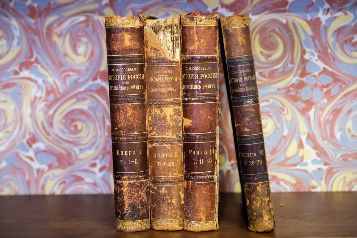 «История России с древнейших времен», С. М. Соловьев. Все мы помним школьные уроки по истории России-иногда увлекательные, иногда скучные, такие занятия были обязательными и являются основой общеобразовательной программы. Но так было не всегда. Книги, попавшие к нам в мастерскую, в этот раз являются прекрасным примером появления в отечественном образовании необходимости в систематизации исторических фактов. Мы отреставрировали 4 тома «Истории России» одного из крупнейших историков- Сергея Михайловича Соловьева.