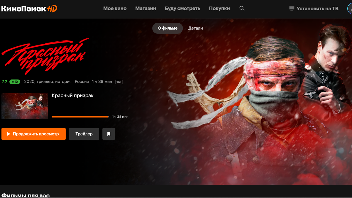 БЕСПЛАТНО посмотрел Красного Призрака на сервисе Кинопоиск HD.