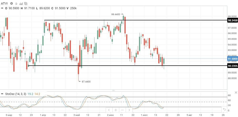 🇺🇸Ловите еще одну хорошую компанию Activision Blizzard, Inc. (ATVI) Инвестиционный горизонт: 2-8 недель Цена входа: текущая рыночная Цель: $98 Потенциальная доходность на сделку: 7% Технический анализ Бумага находится вблизи уровня поддержки в рамках бокового тренда. Фундаментальный фактор Activision Blizzard — один из крупнейших в мире разработчиков компьютерных игр. Производит такие проекты, как World of Warcraft, Call of Duty, Diablo, Starcraft. Компания 3 августа раскроет финансовые показатели за II квартал 2021 года, даст комментарии по текущим и новым проектам, а также поделится прогнозом на следующий квартал. На фоне повышенного спроса на компьютерные игры Activision Blizzard может дать позитивные прогнозы, что отразится на динамике акций.