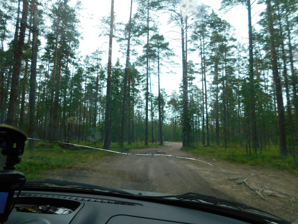 Итак, до Карелии мы не доехали совсем чуть- чуть, свернув на первую же попавшуюся лесную дорогу, которая по карте могла привести к Ладожскому озеру. И привела, спасибо картам OSM. Честно, только для этого уже стоило проехать более 2000 км. Это был первый выход "в природу" за всю поездку. До этого мы не сходили с асфальта и смотрели на лес только из окна. Более того, для меня это был первый выход в северную природу. Идешь и мягкая лесная подстилка пружинит. А еще обилие каких - то ягод (оказалось черника, правда мелкая) и конечно же сосны. Напомню, что к этому моменту мы ехали более 23 часов, и практически не спали. Усталость валила с ног, внимание рассеивалось. В поисках подходящего места для стоянки снесли грантой трухлявый пень, от чего в бампере образовалась вмятина. Выбрали место и так же оперативно принялись обустраивать лагерь, ставить палатку, готовить ужин. Когда лагерь был готов, я с удивлением обнаружил, что время около 23 часов! Привыкнув к южному световому дню и не глядя
