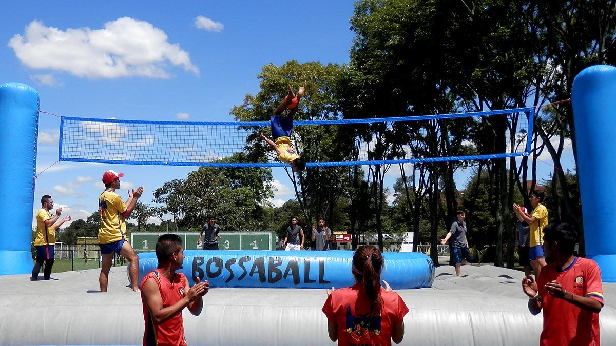 Боссабол. Правила игры. Особенности игры и ее поле Боссабол — командная игра при помощи мяча, которая сильно напоминает пляжный волейбол. Она комбинирует вместе акробатические, футбольные, прыжковые и капоэйро элементы, а также воздушную гимнастику. Принято считать, что появление игры произошло в Бельгии. Основоположником данной идеи выступил Филипп Эйкманс. Невзирая на то, что жил он тогда в Испании, свое творение ему удалось продемонстрировать в Бельгии. После чего в мае 2004 г. Был проведен первый турнир, который получил название Belgian Open. Что такое боссабол Основываясь на правилах боссабола, противостояние происходит между двумя командами, численность которых составляет 5 человек. Игроки должны перебрасывать мяч поверх сетки так, чтобы оппоненты его не отбили. При этом, площадка оборудована надувными батутами, при помощи которых игроки должны создавать различные трюки из существующих видов спорта, например, футбол. Правила: Игровое поле Площадка выглядит как обычный прямоугол