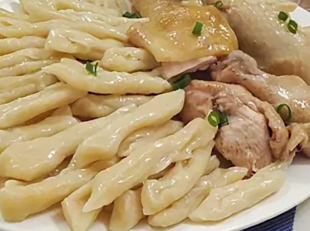 Галушки казачьи Очень вкусное блюдо советую приготовить и попробовать. Такие галушки готовили в моей семье, вкусные-за уши не оттянешь. Нам понадобятся продукты: 1 цыпленок или курица, 400 г.сметаны, 2 головки лука, 50 г.топленого масла, 50 г.сыра, 1 кг.муки, 1 морковь, 1 яйцо, соль, перец, Готовим: Тушку потрошеной курицы или зрелого цыпленка, промываем в воде.Ставим кастрюлю с водой на огонь, опускаем в нее курицу, доводим до кипения, снимаем пенку и варим 20 минут в слабо кипящей слегка подсоленной воде, с добавлением лаврового листа, морковки, луковицы, душистого горошка и несколько веточек укропа. Воды должно быть немного, чтобы тушка была слегка покрыта ею. Сваренную тушку достаем из бульона, слегка охлаждаем и нарезаем кусочками 50 г. В сковороде разогреваем масло, выкладываем кусочки курицы, слегка обжариваем на сливочном масле.Так же поджариваем предварительно очищенный лук нарезанный кольцами. Замешиваем тесто для галушек.Просеиваем муку в миску, в муку добавляем 2 щеп