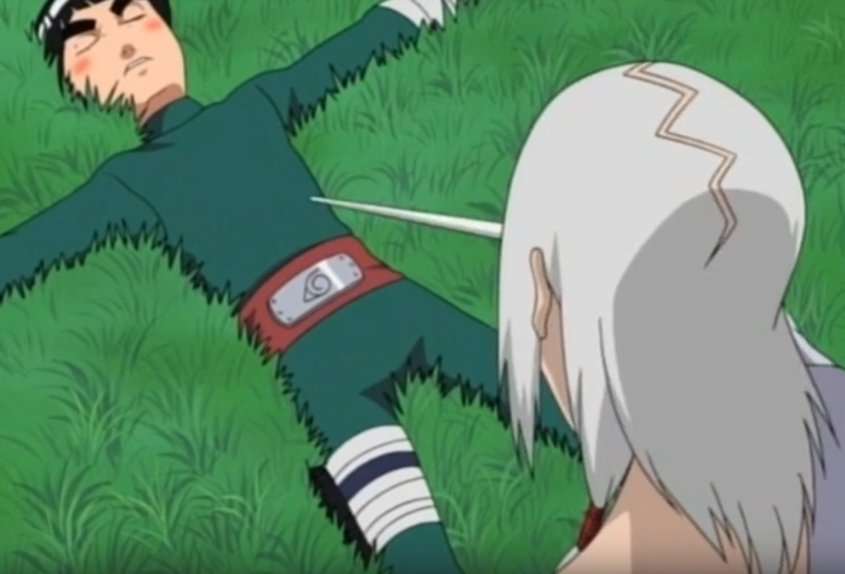 Но и... закономерно, он засыпает реально. Однако, создаётся впечатление, что он снова издевается над Кимимаро, ибо он уворачивается от его попыток пронзить его костью.