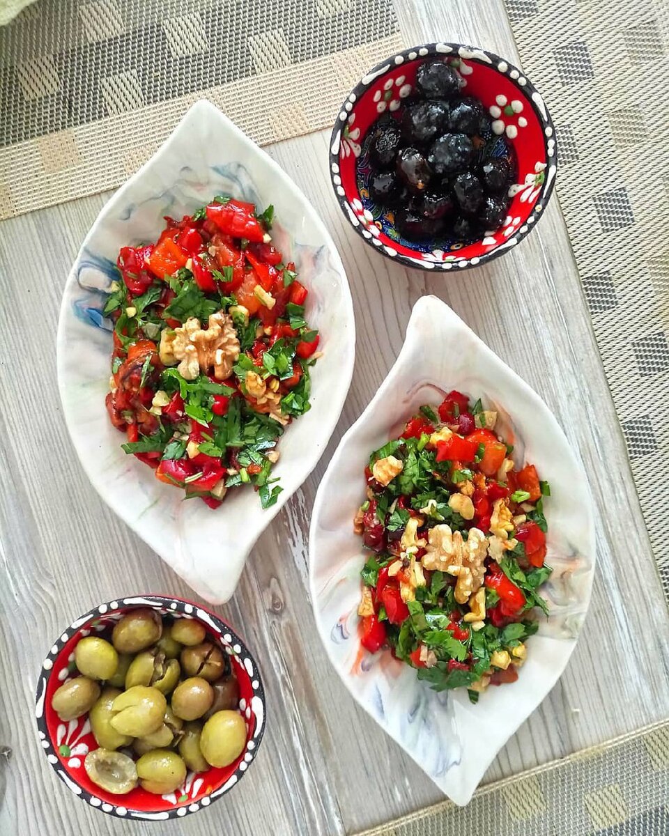 ⠀ Ну, очень вкусный салат из запеченых перцев - köz biber salatası. ⠀ Обязательно попробуйте! Подойдет, как закуска к основному блюду или для турецкого завтрака. ⠀ На то количество, что на фото, я использовала: ⠀ 6 небольших красных сладких перчиков (любите острое, добавьте острый) Пучок петрушки Ползубчика чеснока 5-6 шт очищенных грецких орехов Оливковое масло, соль и гранатовый соус для заправки. Нет соуса, можно заменить лимонным соком ⠀ Перцы запечь в духовке 15 минут при 200°, они будут слегка чёрными. (Можно на гриле, но они потом очень плохо чистятся). ⠀ Аккуратно снять кожуру, порезать кубиками. ⠀ Порезать мелко петрушку, чеснок, орехи и смешать с перцем. ⠀ Заправить столовой ложкой оливкогово масла, чайной ложкой соуса и посолить. ⠀ Быстро и очень вкусно! ⠀ Если любите укроп, можно и его немного добавить. ⠀ Любите такие салаты из запеченых овощей? В Турции они популярны и есть много разных вариантов, с йогуртом, маслом, наршарабом. Буду ещё делиться с вами. ⠀ Если берёте в