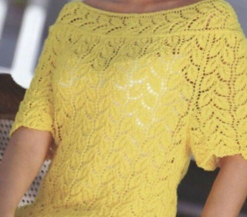 Связанный летний пуловер с круговой кокеткой