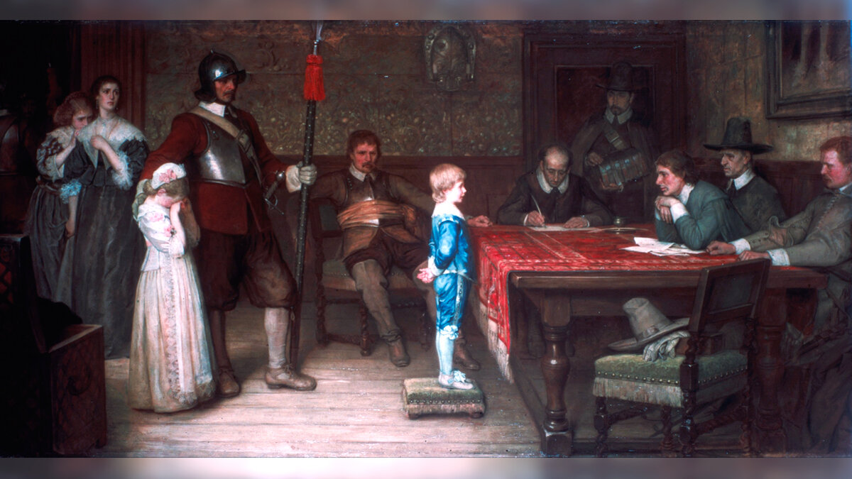 На картине «А когда ты в последний раз видел своего отца?» написанной британским художником Уильямом Йимзом в 1878 году, изображена сцена, которая вполне могла бы происходить в реальности во времена Английской революции 17 века. На ней мы видим относительно небольшое помещение с каменными стенами и старинной добротной мебелью, похожее на кабинет или же небольшую гостиную. Мужчины в тёмных одеждах, сидящие за столом, накрытом красной скатертью, о чём-то расспрашивают стоящего на табуретке мальчика в нарядном атласном костюмчике небесно-голубого цвета. Люди в тёмной одежде, удобно расположившиеся за столом и развалившийся на стуле офицер с оранжевым поясом поверх военной кирасы — это так называемые «Круглоголовые», сторонники Парламента. Современники так их прозвали за привычку коротко стричься, в то время как роялисты, поддерживающие короля, традиционно носили длинные волосы. Что же происходит в комнате, изображённой на картине? Отряд сторонников Парламента занял поместье роялиста и