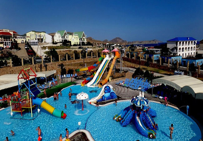 Детский комплекс Аквапарк в Коктебеле стилизован под пиратский островок Многие отдыхающие из других курортных городов Крыма приезжают в Коктебель чтобы посетить Аквапарк. Это один из самых крупных водных комплексов Коктебеля. Аквапарк располагается на фоне горного пейзажа и очень хорошо вписывается в рельеф местности. На территории водного парка площадью более 4 гектаров разместились 7 бассейнов, 24 горки,отличающиеся разнообразием по высоте и крутизне. Под присмотром опытных волонтёров дети могут блуждать по лабиринту, побывать на пиратском бриге, поискать клад. Это развлечение ждёт детей после того, как они вволю накупаются и накатаются на горках. :) Симпатичные детские горки, их тут 13 и они разнообразны по сложности и высоте. Есть и для малышни. Аттракцион "Семья на плоту" - все вместе на широкой горке летят по оранжевому каналу прямо в бассейн. Это же не так уж и страшно, когда все вместе! Не все рискнут поучаствовать в аттракционах, где не только весело, но и ...жутко. В "Чёрно