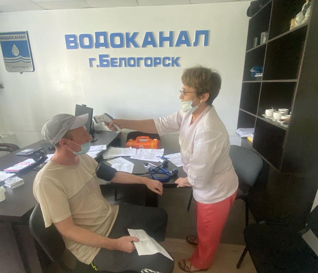 Трудовые коллективы Белогорска прививаются от коронавирусной инфекции. Работники предприятий организаций получают вакцину без отрыва от производства. Накануне Белогорская больница организовала выезд мобильной прививочной бригады. 22 июля привились сотрудники ООО “Водоканал”. ― Без отрыва от рабочего процесса привилось 50 сотрудников “Водоканала”, ― рассказывает специалист по кадрам Юлия Колесник. ― Ранее самостоятельно поставили прививку еще 24 человека. 15 человек получили медотвод, а остальные, кто не успел привиться на работе, в силу уважительных причин, поставят прививку до 30 июля. Люди, понимая всю серьезность реалий, стали более ответственно относится к своему здоровью. Благодарим медицинских работников, что откликнулись на запрос предприятия о выездной вакцинации и привили всех желающих. Ранее сообщалось, в Белогорскую больницу поступила дополнительная партия вакцины «Гам-КОВИД-Вак» в количестве тысячи доз. На сегодня привито уже почти 50 процентов горожан, подлежащих вакц