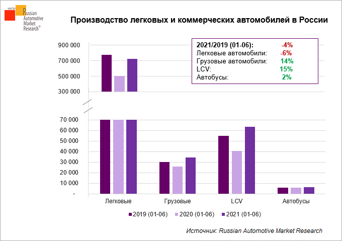По данным Russian Automotive Market Research, за первое полугодие 2021 года производство автомобилей в России составило 829 тыс. ед., что на 44% больше результата аналогичного периода 2020 года. В сравнении с аналогичным периодом 2019 года производство автомобильной техники в первом полугодии 2021 года сократилось на 4%. https://www.napinfo.ru/infographics/proizvodstvo/v-rossii-vyroslo-proizvodstvo-avtomobilnoy-tekhniki Пожалуйста, оцените эту статью и подпишитесь на канал или поделитесь ссылкой на него в социальных сетях, если считаете его интересным.