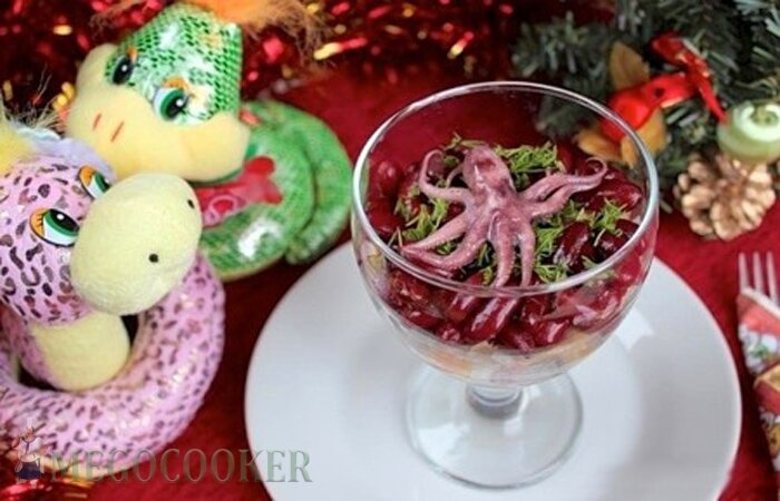 Салат «Новогодняя история» Привлекательно выглядит салат «Новогодняя история» с сочетанием фасоли и шампиньонов. Думаю, что это стоит попробовать каждому.Салатик порядочными слоями в бокалах будет эффектно выглядеть на праздничном столе как ассорти в элитном виде. Ингредиенты: Привлекательно выглядит салат «Новогодняя история» с сочетанием фасоли и шампиньонов. Думаю, что это стоит попробовать каждому. Салатик порядочными слоями в бокалах будет эффектно выглядеть на праздничном столе как ассорти в элитном виде. Но и обычно перемешанный в салатнике он будет не менее выразительно и презентабельно выглядеть. На этой новогодней ноте, помимо описания ингредиентов, мне хотелось бы поведать праздничную историю… В Новый год, прямо в наступление этого яркого и светлого праздника, который празднует весь мир, мы вышли на улицу и сосед подарил моей доченьке очаровательную розовую змею. Спустя несколько дней дочка обнаружила точно такую же змею, только зеленого цвета. Удивительно, что нашла она ее