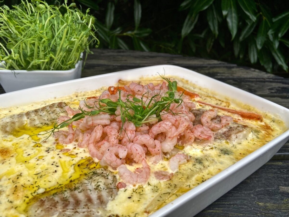 Треска с креветками по “скандинавски” На две порции нам понадобится : 🔹Треска – 400 г 🔹Сливки – 150 мл 🔹Креветки замороженные очищенные – 200 г 🔹Пастернак – 1 шт. 🔹Морковь – 1 шт. 🔹Лук – 1 шт. 🔹Белое вино – 50 мл 🔹Сливочное масло – 50 г 🔹Оливковое масло – 50 мл 🔹Соль – по вкусу 🔹Черный перец – по вкусу 🔹Укроп – пучок 🔹Шафран – 1/2 ч.л. Приготовление: 1️ Разогрейте духовку до 180 градусов. 2️ Порежьте пастернак, морковь и лук на небольшие куски. Выложите в глубокую стеклянную форму для запекания овощи и рыбу. Посыпьте крупной солью. Приготовьте соус : 3️ Сливки разогрейте на медленном огне вместе со сливочным маслом и вином. Добавьте черный перец, измельченный укроп и шафран. 4️ Залейте рыбу с овощами соусом и выпекайти при 180 градусах в течении 30 минут. 5️ Разморозьте креветки, добавьте к блюду сверху и выпекайте еще 7-10 минут. 6️ В самом конце добавьте оливковое масло. На все блюдо : Белки — 124 г (37 % ккал) Жиры — 93 г (60 % ккал) Углеводы — 11,7 г (3% ккал) На одну