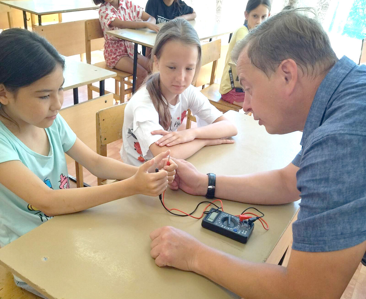 Каждый день начинается с того, что мы включаем свет, чайник, электрическую плиту, чтобы приготовить завтрак… Все эти электроприборы давно стали частью нашей жизни. Но откуда же берется ток? Как работают электрические приборы? Что такое вообще электричество и электроцепи? Как солнечная энергия заряжает аккумуляторы? В досуговом центре абаканской школы № 2 как раз состоялся такой мастер-класс — «Электроэнергия и электрические цепи». В специальной компьютерной программе ребята собрали схемы, с помощью которых включили приборы без розетки. Также поговорили о значении силы тока, напряжения и сопротивления, о принципе заряда батареек и работе лампочек. Кроме того, учитель физики показал, как измерить свое внутреннее сопротивление с помощью тонометра. Это нехитрая и безболезненная процедура, которую можно провести в домашних условиях. Школьники попробовали добыть статическое электричество путем трения расчески о волосы и передвинуть кусочки бумаги. Ну и, конечно же, ребят познакомили с техник