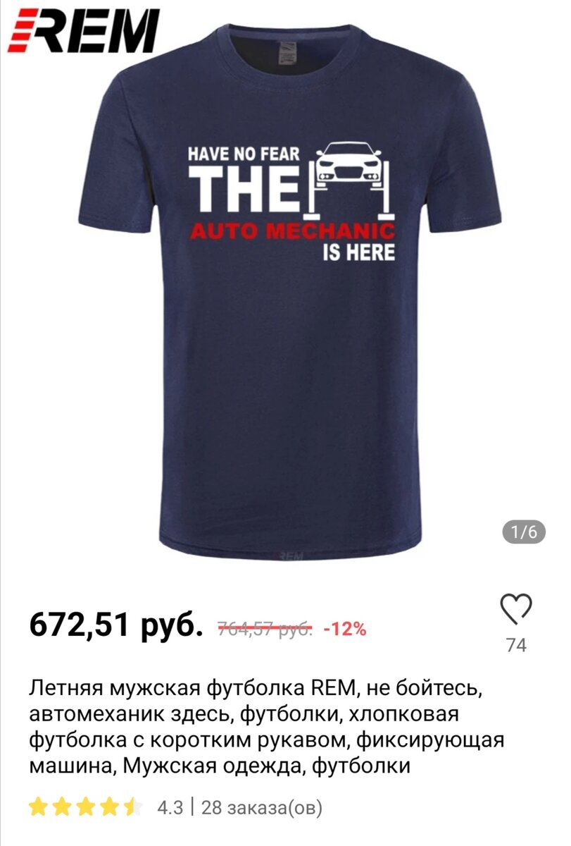 Всем привет! Футболок много не бывает, особенно когда лето начинается чуть ли не с апреля месяца и заканчивается наверное в сентябре.) Решил я с женой присмотреть мне футболку на сайте Алиэкспресс. Вернее, наверное не так, больше всё же увидели отличный отзыв на фирму поставщика трикотажа и решили попробовать заказать. Продавец данной футболки - REM Official Store( Китай). Зарегистрирован на сайте Алиэкспресс с 16.06.2016 года. 97% положительных отзывов! Ассортимент футболок очень широкий у этого продавца, цены разные. Много футболок именно с разными надписями и принтами. Самая низкая цена футболки на сегодняшний день - 538.62 рубля. Я выбрал вот такую синюю футболку по цене 667.11 рублей( сейчас она стоит уже 672.51 рубль) Мне понравилась прикольная надпись на футболке "не бойтесь, автомеханик здесь"))), хотя я совсем и не автомеханик... Я заказал размер XL и на мой 52-54 он отлично подошёл. Футболка представлена во многих расцветках и все они, на мой взгляд, интересные и прикольные.