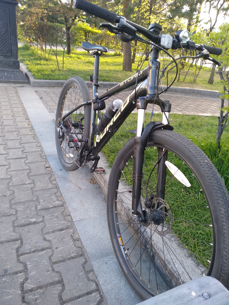 Привет дорогой читатель! Продолжаю свою историю) так вот подарив stern, и скопив немного денег , я отправился в триал спорт , за велосипедом Jamis на 29 колесах ,в интернете выбрал его, но приехав в магазин меня ждал сюрприз (( продавец сказал что он не продается так как на нем лопнула вилка....и предложил выбрать другие модели на 29 колесах...походив вокруг великов , мой взгляд пал на Norco ,хоть и оборудование было начального уровня, а именно torney , но тормоза уже шли гидравлика хоть и дешёвая , и рама в целом была красивая и подлежала модернизации....да и денег на что то круче мне тогда не хватало! Было приятно решение брать его! И вот окрылившись я поехал на нем в сторону нашей набережной, проехав несколько км я понял что переключатель не настроен...я вернулся обратно в магазин и использовал бесплатное ТО так сказать))) , после снова полетел! Счастье наполняло, накатал я помню в тот день около 50 км , почувствовал разницу между 26 и 29 колесами , вел управлялся совершенно иначе