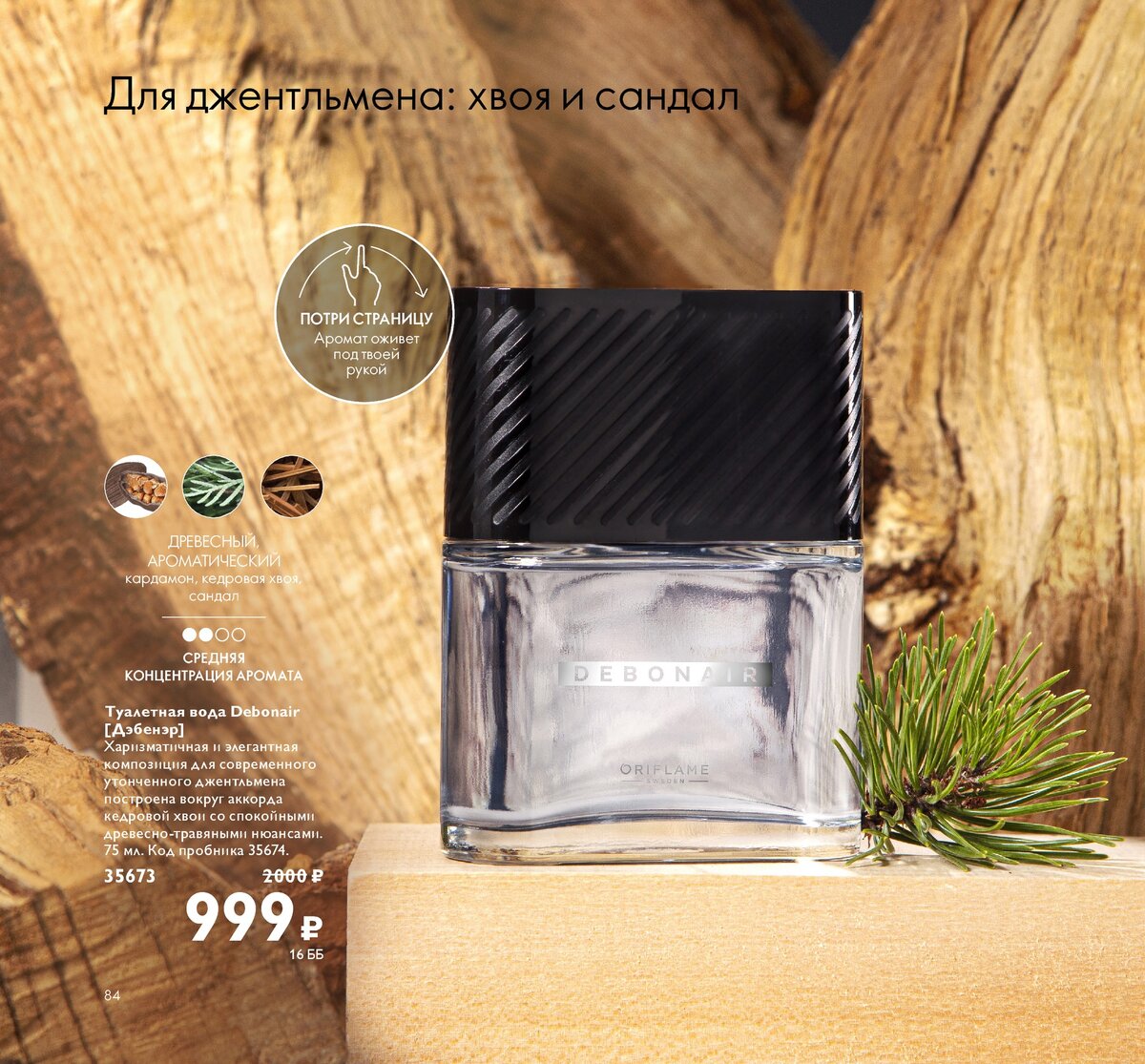 Харизматичный и запоминающийся аромат излучает естественное обаяние. Элегантная композиция для современного джентльмена построена вокруг аккорда кедровой хвои со спокойными древесно-травяными нюансами. Тип аромата: древесный, ароматический; Верхние ноты: грейпфрут, кардамон, чёрный перец; Ноты сердца: хвоя кедра, мускатный орех; Базовые ноты: ветивер, сандал, пачули. ● В сердце аромата — хвоя кедра, одна из классических парфюмерных нот. Её травянистые, природно-древесные нюансы придают композиции элегантность, утончённость и притягательность. ● Автор композиции, Адилсон Рато, создаёт ароматы с 18 лет. С тех пор он стал одним из самых известных парфюмеров Бразилии с быстро растущим портфелем признанных творений для ведущих мировых брендов.