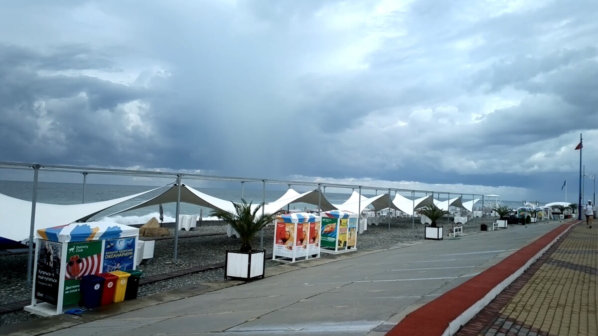 Адлер, 23.07.2021, как выглядит шторм на разных пляжах. Смерч, посадка огромного "Боинга" над бушующим морем! Видео и фото.